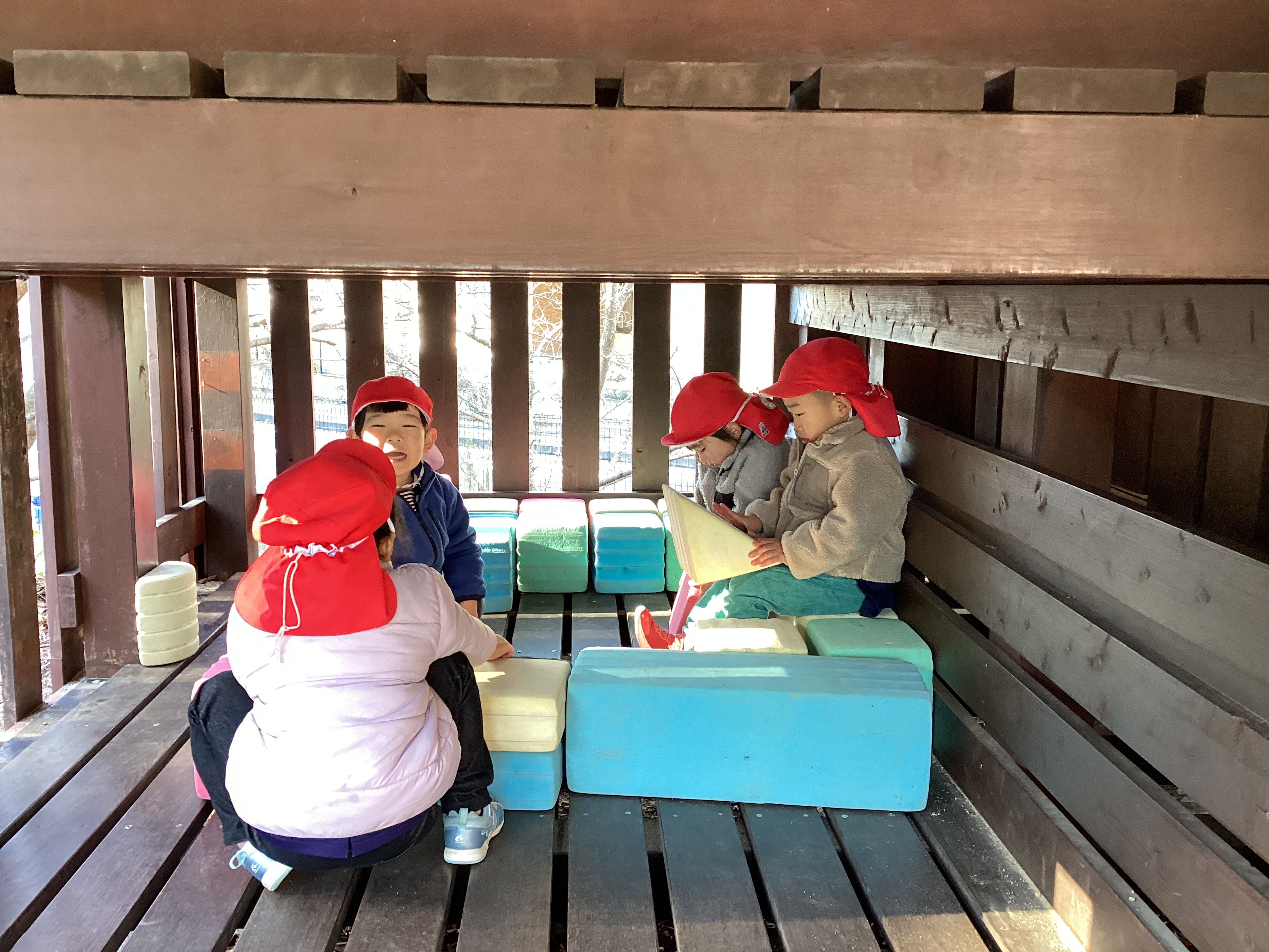 さくら組さんの秘密基地。何をしているのかな?