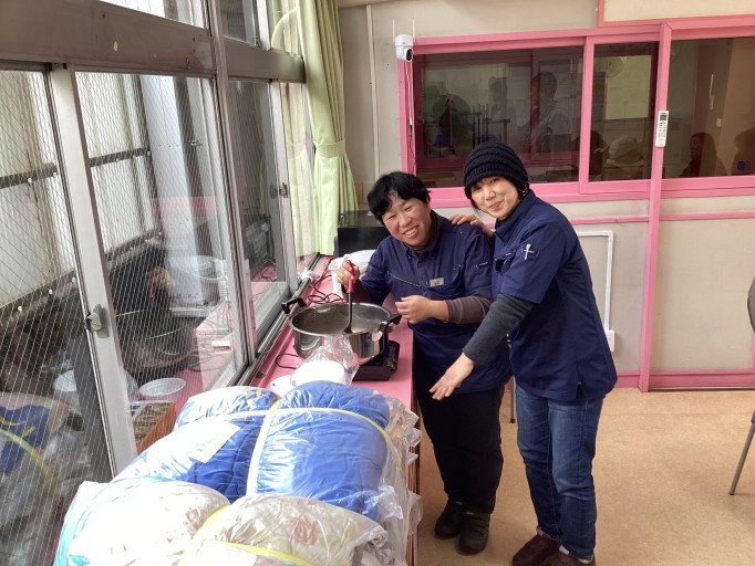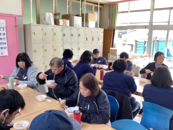 みんなでワイワイぜんざいをいただきました