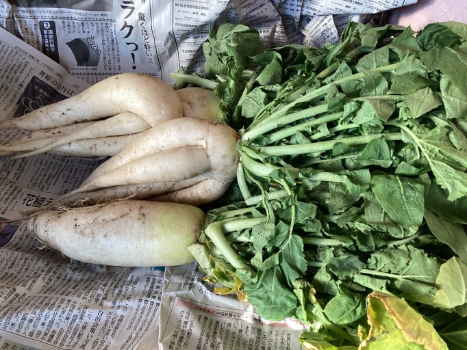 かわいい大根や、立派な大根をいただきました