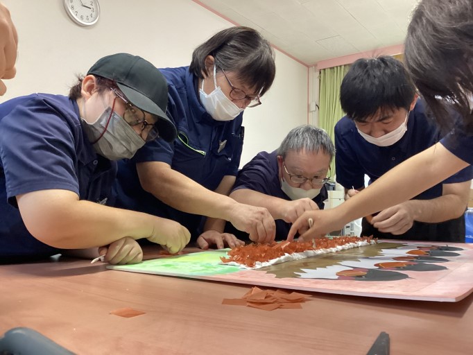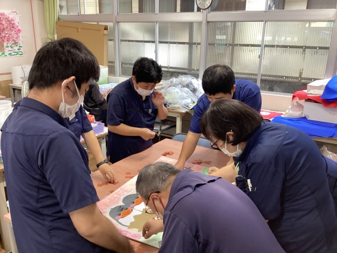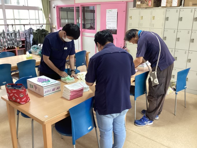 こちらは部屋では保育園の洗濯物をたたんでいます