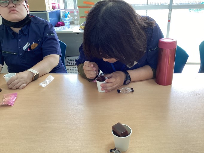 ホットケーキミックス粉を園児さんと一緒に混ぜました!