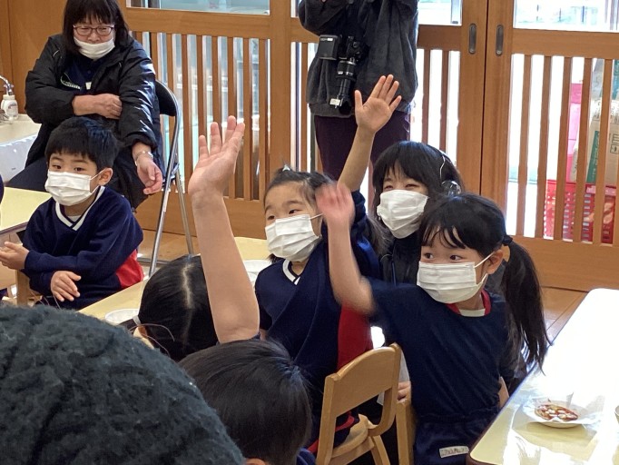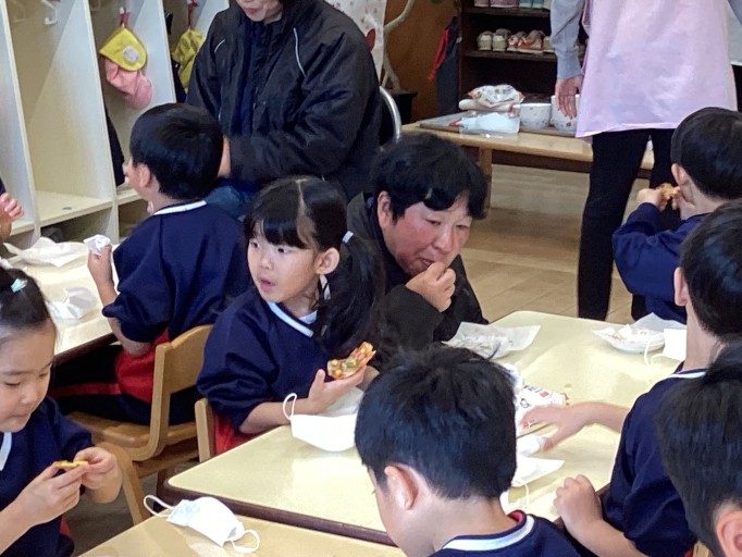 ピザを焼いている間に園児さんと一緒にクイズをしました!